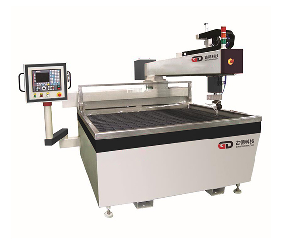 四軸水切割機是古德率先開發(fā)的新一代用于陶瓷石材拼花等領(lǐng)域的新型切割機。X4-Ⅲ四軸水切割機采用“可調(diào)式斜邊切割控制機構(gòu)”等發(fā)明專利技術(shù)(專利號:ZL 201110245675.9),在普通水切割機的基礎(chǔ)上增加了斜邊控制機構(gòu)和四軸控制系統(tǒng),通過調(diào)整偏擺軸的偏擺角度,并配合回轉(zhuǎn)軸的轉(zhuǎn)動來控制切割頭的姿態(tài),使得石材陶瓷切割獲得反方向的切口斜邊,拼接時省去了人工打磨這一勞動強度最大、花費時間最長、粉塵和噪音污染最為嚴重的環(huán)節(jié)。四軸水刀不僅大大提升了石材陶瓷拼圖的品質(zhì),而且極古德提高了生產(chǎn)效率,降低了生產(chǎn)成本,是石材陶瓷拼花行業(yè)的一項革命。